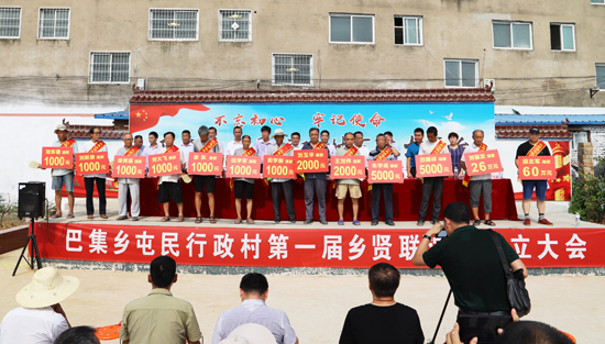 “段志軍每年都捐資捐物回報(bào)家鄉(xiāng),他去年捐30萬(wàn)為巴集大街和屯民村安裝的200多盞路燈已經(jīng)亮了,捐85萬(wàn)元新建的村室馬上竣工,將是全縣標(biāo)準(zhǔn)最高的,現(xiàn)在又捐60萬(wàn)元;劉振發(fā)這幾年捐了40萬(wàn)多,給村里修路、栽樹(shù)、幫扶貧困戶,今天又捐26萬(wàn);鄉(xiāng)賢會(huì)成立之前,大家已累計(jì)捐款240多萬(wàn)元……”在今年8月6日屯民行政村鄉(xiāng)賢會(huì)成立儀式上,朱明理宣布捐款名單時(shí)多次被雷鳴般的掌聲打斷;“最難忘的就是村口的那棵大楊樹(shù),最好吃的就是中午剩的涼面條、晚上嗑著大蒜吃?!痹谌T峽創(chuàng)業(yè)的劉振發(fā)的發(fā)言勾起了眾多游子的親情回憶;“啃個(gè)干饃,灶火里燒個(gè)辣椒一砸,撒點(diǎn)兒鹽就是最好吃的。”在商丘任職的徐其山接過(guò)話茬說(shuō);“事業(yè)越大,工作越忙。但是,他們從四面八方歸來(lái),這就是對(duì)家鄉(xiāng)的情誼,我們村肯定會(huì)越來(lái)越好?!编l(xiāng)賢徐其民感慨地說(shuō);“從屯民走出的大學(xué)生不少,如今長(zhǎng)成了企業(yè)家、行政干部等等,如參天大樹(shù),卻不忘根、不忘本,這就是屯民的驕傲?!睆氖陆逃袠I(yè)35年的鄲城二高校長(zhǎng)趙耀身為屯村一員感觸良多……
