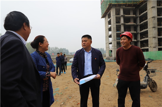 在未來(lái)家園四期項(xiàng)目建設(shè)工地,孫紅偉一行詳細(xì)聽(tīng)取了施工單位負(fù)責(zé)人對(duì)項(xiàng)目施工現(xiàn)場(chǎng)情況的介紹,針對(duì)項(xiàng)目工地現(xiàn)場(chǎng)施工安全、環(huán)保要求,衛(wèi)生環(huán)境治理、項(xiàng)目觀摩展板設(shè)計(jì)、擺放等問(wèn)題,孫紅偉現(xiàn)場(chǎng)提出意見(jiàn)和要求。