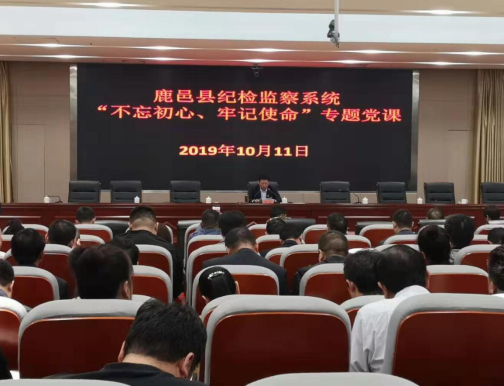 10月11日,鹿邑縣委常委、紀(jì)委書記、監(jiān)委主任韓林利用縣紀(jì)委監(jiān)委“不忘初心、牢記使命”主題教育集中學(xué)習(xí)時間以《砥礪初心本色 ,強(qiáng)化使命擔(dān)當(dāng),奮力推進(jìn)新時代紀(jì)檢監(jiān)察工作高質(zhì)量發(fā)展》為題為全縣紀(jì)檢監(jiān)察系統(tǒng)全體干部上了一堂生動的專題黨課。