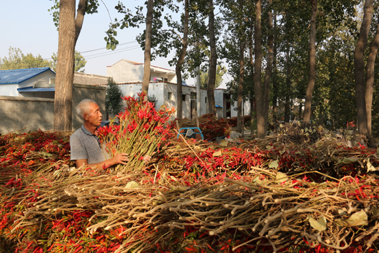 此時,正值西華縣秋收時節(jié),玉米、花生、大豆、谷子、辣椒、柿子、大棗、甘蔗等農(nóng)作物應季而熟。滿眼的金色、紅色與田間地頭緊張運作的農(nóng)業(yè)機械和農(nóng)民忙碌的身影構(gòu)成一幅美不勝收的秋收畫卷。