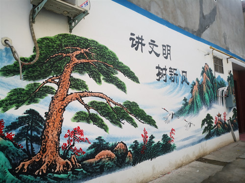 據(jù)了解,“創(chuàng)衛(wèi)”以來,楊莊自然村陳積多年的垃圾徹底清除,主干道路面全部硬化。根據(jù)該村巷子特點,共打造了“忠孝巷”、“和諧巷”、“明禮巷”等7處主題鮮明的巷子,在毗鄰道路的墻體以及間距較寬的巷子兩邊墻壁,繪制出主題突出的大型畫作,在間距較窄的巷子則以展板的方式懸掛圖文并茂的社會主義家庭文明新風尚等內(nèi)容。