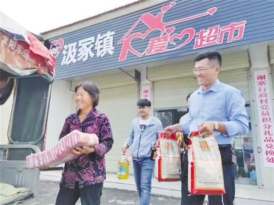 近日,記者在鄲城縣汲冢鎮(zhèn)謝寨行政村“愛(ài)心超市”看到,64歲的孫雪梅用鎮(zhèn)黨委、鎮(zhèn)政府給予的積分卡換取不少生活用品。為讓全鎮(zhèn)187戶兜底特困戶選到稱心如意的物資,汲冢鎮(zhèn)黨委、鎮(zhèn)政府匯聚全社會(huì)的愛(ài)心,備足米、面、油、棉衣、棉被等物資,將濃濃的黨恩通過(guò)“愛(ài)心超市”傳向千家萬(wàn)戶。