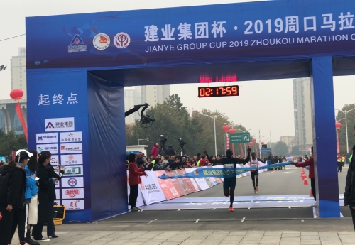 周口馬拉松賽場捷報頻傳,全程男子組冠軍誕生,來自肯尼亞的選手KIPLAGAT JAMES,用時2小時17分59秒,奪得2019周口馬拉松暨善跑中國周口站全程項目男子組的冠軍。