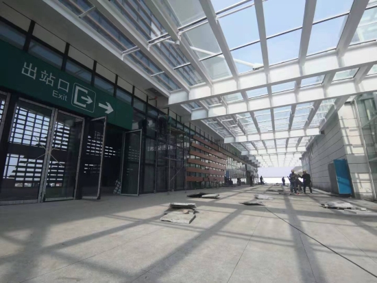 經(jīng)過(guò)檢票機(jī)安檢通道,乘電梯或步梯通往站臺(tái)。該站站場(chǎng)設(shè)2臺(tái)4條(含正線(xiàn)2條),設(shè)基本站臺(tái)、側(cè)式站臺(tái)各1座,站臺(tái)最高聚集人數(shù)為600人。