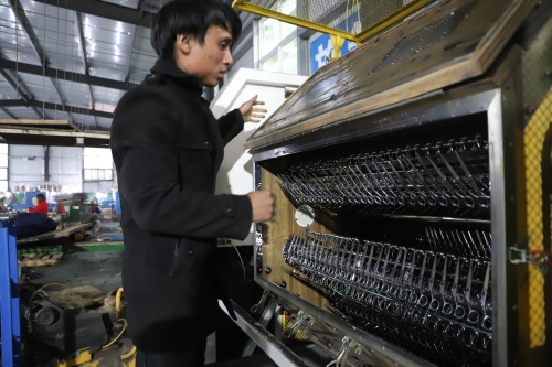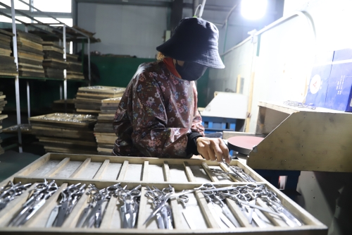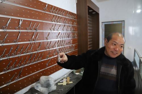 “我也是從小就外出,一直在江蘇蘇州發(fā)展,做刀剪十幾年了?,F(xiàn)在家鄉(xiāng)環(huán)境好,回來發(fā)展比在南方還有前途?!苯衲?9歲的陳政治老家是虎崗鄉(xiāng)陳莊村。被虎崗鄉(xiāng)黨委政府的誠(chéng)意所感動(dòng),他很樂意回鄉(xiāng)發(fā)展,因?yàn)榉孔鈨r(jià)格低、務(wù)工人員穩(wěn)定,營(yíng)商環(huán)境又好,所以他帶著自己的外甥楊亞杰和技術(shù)團(tuán)隊(duì)回到老家鄲城,還能助力家鄉(xiāng)經(jīng)濟(jì)發(fā)展。陳政治說,他的廠子所生產(chǎn)的東升、jack、亞寶等品牌刀剪全部銷往全國(guó)高檔理發(fā)店,產(chǎn)品供不應(yīng)求。像這樣的高檔刀剪生產(chǎn)廠家,在中原地帶極少。剛投產(chǎn)幾個(gè)月,他已經(jīng)接到了來自韓國(guó)、日本等地的訂單。