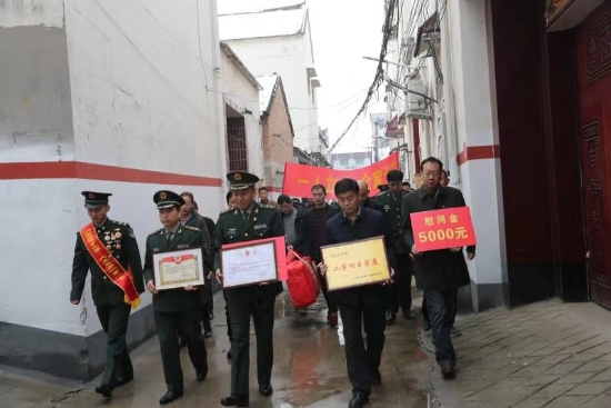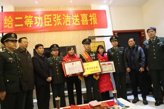 隨后,周口軍分區(qū)政治部主任李揚(yáng),太康縣委副書記、政法委書記劉海艇,縣委常委、副縣長韓維俊,縣委常委、人武部部長于永前,人武部政委郭立君等領(lǐng)導(dǎo)給張潔的母親盧靈芝送去了立功喜報(bào)、二等功臣家庭牌匾和慰問品、慰問金。