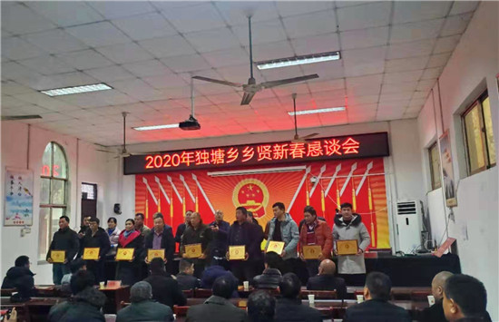 最后,鄉(xiāng)黨委書記高毓明向與會(huì)鄉(xiāng)賢代表送上了新春祝福,并介紹了獨(dú)塘鄉(xiāng)2020年發(fā)展規(guī)劃和未來(lái)工作思路,希望有資金、懂技術(shù)的成功人士回鄉(xiāng)發(fā)展創(chuàng)業(yè)。高毓明書記表示,獨(dú)塘鄉(xiāng)的每一分進(jìn)步、每一份成績(jī)的取得,都離不開鄉(xiāng)賢們的鼎力支持,希望各位鄉(xiāng)賢有空?;丶铱纯矗e極為家鄉(xiāng)發(fā)展獻(xiàn)言獻(xiàn)策,為建設(shè)美麗和諧新獨(dú)塘奉獻(xiàn)自己的一份力量。