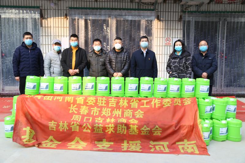 為緩解全區(qū)醫(yī)用物資緊缺的情況,吉林省公益求助基金會和周口吉林商會的代表柳崗一行人千里馳援,于2月3日上午向淮陽區(qū)捐贈可稀釋后使用的消毒液濃縮液100桶,總計(jì)1噸,用于疫情防控。
