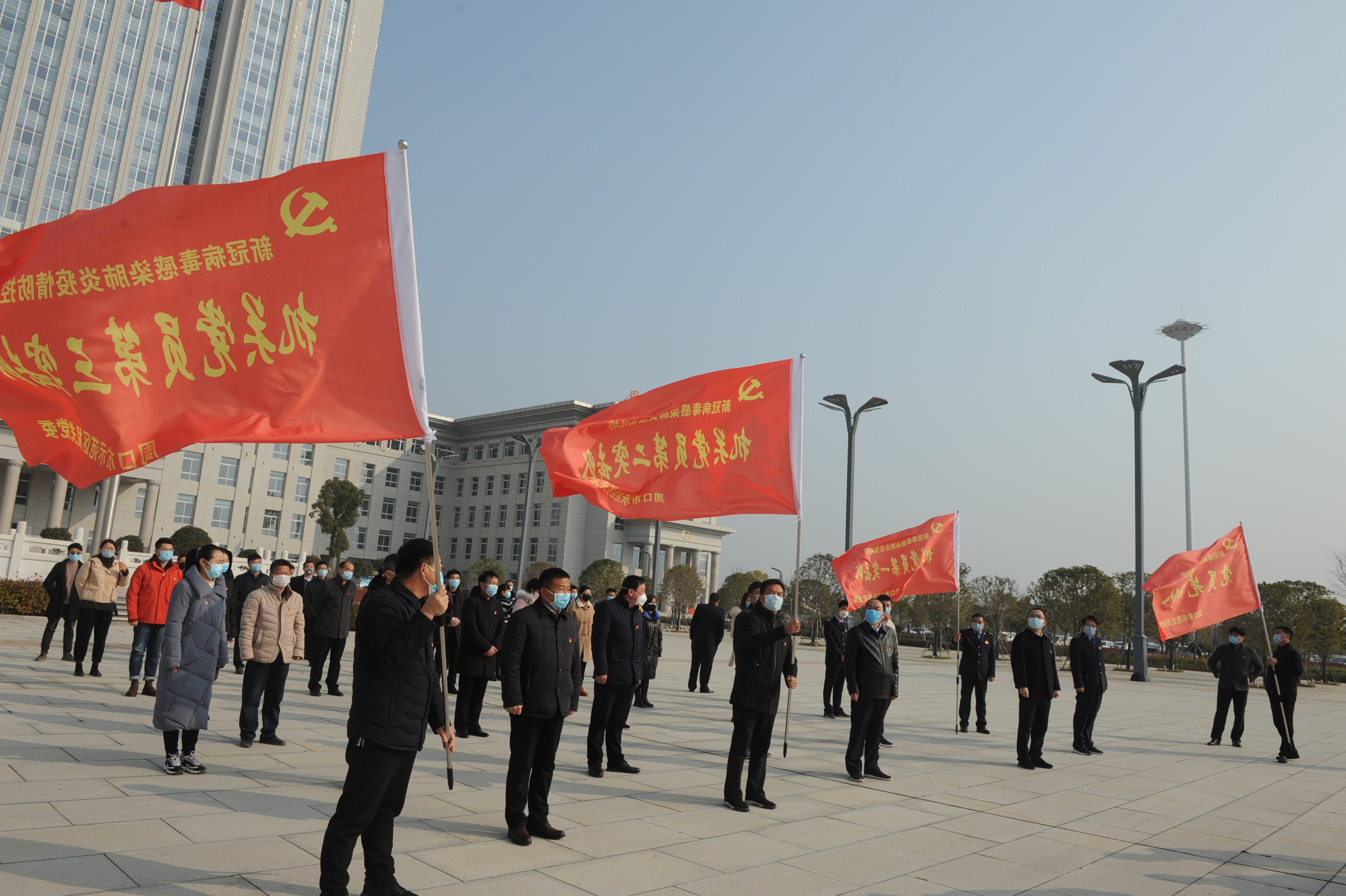 2月3日上午,在國旗下、黨旗前,示范區(qū)廣大黨員干部面對黨旗重溫入黨誓詞,充分展示了廣大黨員干部主動請戰(zhàn)到戰(zhàn)“疫”一線的決心和信心。隨后,區(qū)機關(guān)黨委相關(guān)領(lǐng)導(dǎo)向黨員先鋒隊和3個黨員突擊隊授予隊旗,希望他們堅守在一線、圓滿完成疫情防控的各項任務(wù)。
