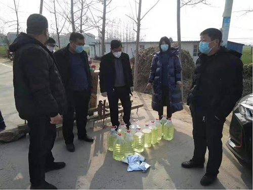 2月3號向淮陽區(qū)黃集鄉(xiāng)大李行政村【貧困村】捐贈(zèng)84消毒液100斤,84消毒液片5000片,酒精一桶,口罩200個(gè)。2月4號向淮陽區(qū)城關(guān)鎮(zhèn)政府捐贈(zèng)84消毒液600斤,消毒片5000片。