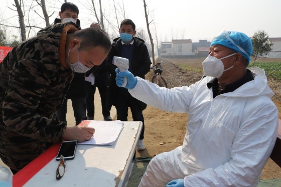 起初,苑統(tǒng)俊配合村干部在村里宣傳疫情防控政策、方法,1月25日,我省啟動一級應急響應,港區(qū)迅速做出響應,在轄區(qū)內各個村莊社區(qū)設置疫情監(jiān)控點,限制人員流動,全天候監(jiān)測進出人員身體狀態(tài)。苑統(tǒng)俊擔起監(jiān)控點村醫(yī)的職責,負責該村一至四組的疫情防控。他每天騎電動車前往孫莊村監(jiān)測點值守,為過往人員測量體溫、觀察外地返鄉(xiāng)人員狀態(tài)、登記觀察正處在隔離期的從湖北、武漢返鄉(xiāng)人員體溫數(shù)據,為鄉(xiāng)村干部開展防控工作提供技術支持。