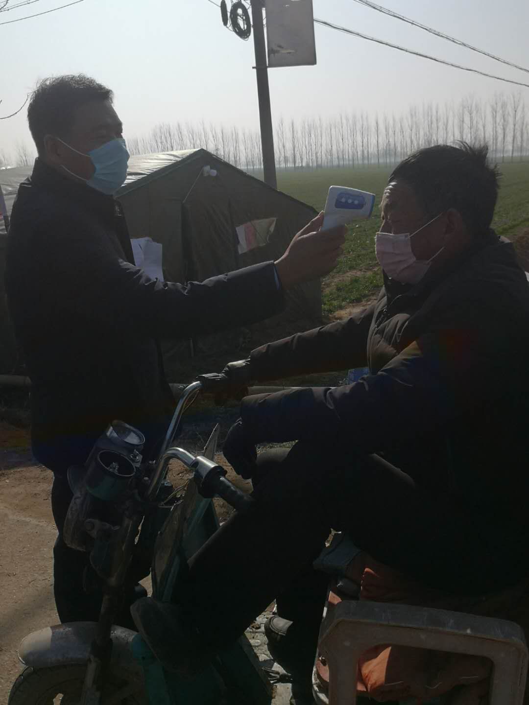 由于物資未曾到位,檢測(cè)點(diǎn)僅簡(jiǎn)單搭了一頂四面透風(fēng)的帳篷,紀(jì)占東跟其他工作人員一起在寒風(fēng)中檢查登記出入人員、測(cè)量體溫,天氣寒冷,吃飯也只能用饅頭、泡面對(duì)付,但是內(nèi)心是火熱的。紀(jì)占東說在防控工作中,絕大部分群眾理解和支持的,有群眾在家里燒好開水給值班人員送,還有的群眾送來暖手寶、熱氣騰騰的飯菜......這些都是他工作的動(dòng)力和源泉。