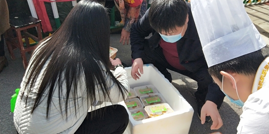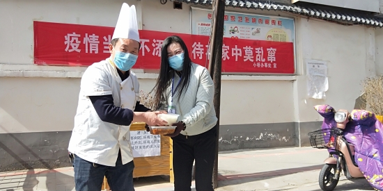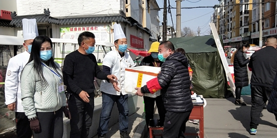 2月22日中午,川匯區(qū)小橋辦事處高莊社區(qū)疫情防控值勤卡點(diǎn)迎來盛世宴賓樓的大廚們,他們帶著熱騰騰的午餐前來慰問值勤人員,為抗疫一線工作者改善伙食。盛世宴賓樓負(fù)責(zé)人智廣旭告訴記者,社區(qū)疫情防控工作緊張忙碌,他好幾次看到值勤卡點(diǎn)的工作人員用方便面對付一日三餐,心里很感動(dòng)也很難受,所以飯店決定在疫情結(jié)束之前連續(xù)贈送午餐晚餐,“讓社區(qū)卡點(diǎn)的同志吃好點(diǎn)”。