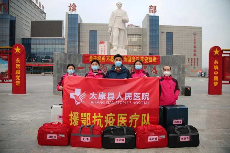太康縣人民醫(yī)院援鄂抗疫醫(yī)療隊(duì)近日揮師出征,太康縣委、縣政府在縣人民醫(yī)院舉行了出征儀式?!拔抑驹格Y援武漢,永遠(yuǎn)牢記健康所系,性命相托,堅(jiān)決做到服從命令,聽從指揮,不怕犧牲,勇往直前,為打贏疫情阻擊戰(zhàn),攻堅(jiān)克難,不勝不還?!惫偃A在現(xiàn)場鄭重許下錚錚誓言。