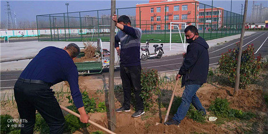 在學(xué)校老師的努力下,在蔣莊村干部群眾支持下,經(jīng)過(guò)10多天的辛勤勞動(dòng),蔣莊小學(xué)今年新栽植綠化樹(shù)、花木5000多棵(株),本來(lái)綠色盎然的校園又添新綠。