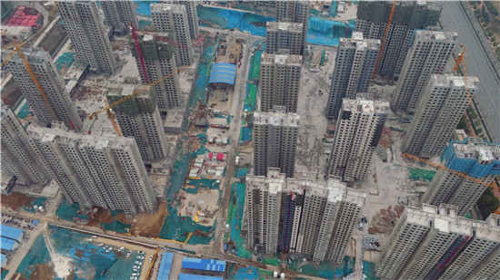 目前,該項目21棟樓已全部主體封頂,負2樓至屋面層的二次結構施工及屋面工程已經全部施工完成,正在進行外墻保溫及內墻粉刷、室內水泥地板鋪設工作,其中有4棟樓體的外墻保溫工作已完成90%;內墻粉刷工作整體已完成60%;地下車庫正在進行回填土和墊層施工。3月下旬將開始分批安裝電梯,預計6月份交房。