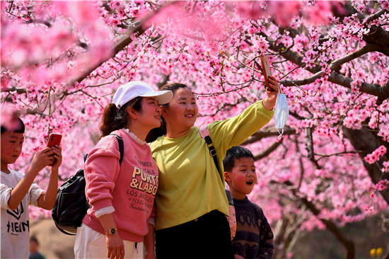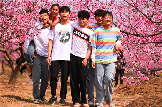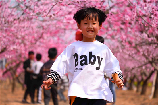 而在萬畝桃花深處,賞花的人們也是醉不知?dú)w。大人孩子們神采飛揚(yáng),追逐賞花,探幽覓芳,玩得很嗨!還有一個(gè)時(shí)尚的人們,在桃花深處玩抖音、玩直播、拍視頻,與天下網(wǎng)友共賞花海之美。