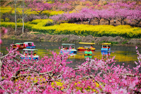 今年是黃橋迎來第十六屆桃花節(jié),鑒于疫情防控的需要,本屆桃花節(jié)不再聚眾舉辦,然而,燦爛如錦的黃橋,還是吸引著大批人們前來踏青賞花。3月24日,仲春的太陽火辣辣的,依然阻止不了人們前來觀賞桃花的好心情,游人如織,攜家?guī)Э冢襞笠?,漫游在桃花深處,桃花飛紅的潁河里,大人帶著孩子們踏著游船,暢游花海碧水之間,游船點(diǎn)點(diǎn),讓人嘆為觀止。