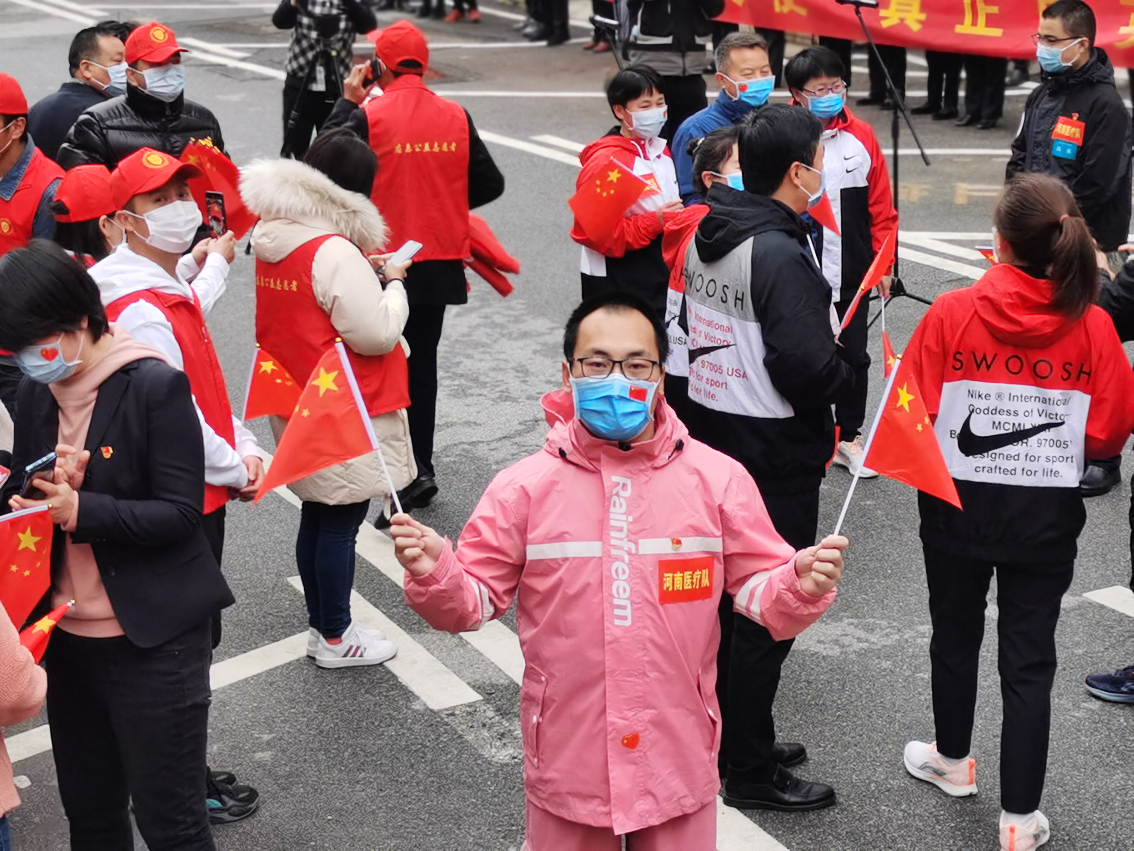 3月30日上午,在完成各自使命之后,按照河南省援鄂醫(yī)療隊(duì)統(tǒng)一安排起程凱旋。湖北街頭萬(wàn)人空巷送英雄,街頭車輛長(zhǎng)鳴笛,沿街循環(huán)播放紅歌《歌唱祖國(guó)》,勝利的歌聲激蕩勝利的心情。