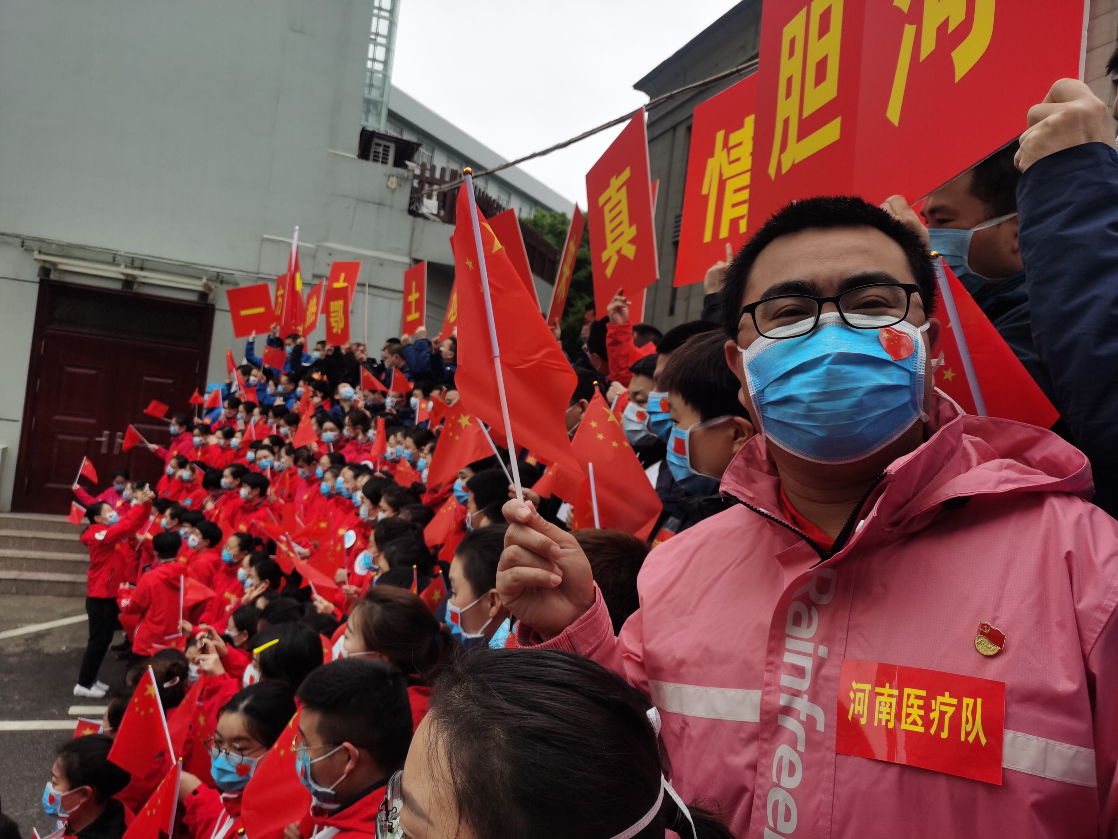 3月30日上午,湖北武漢,《歌唱祖國(guó)》響徹云霄。鄲城縣援鄂抗疫的5名醫(yī)護(hù)隊(duì)員隨河南醫(yī)護(hù)隊(duì)一道,完成使命、起程凱旋,今天下午到周口。
