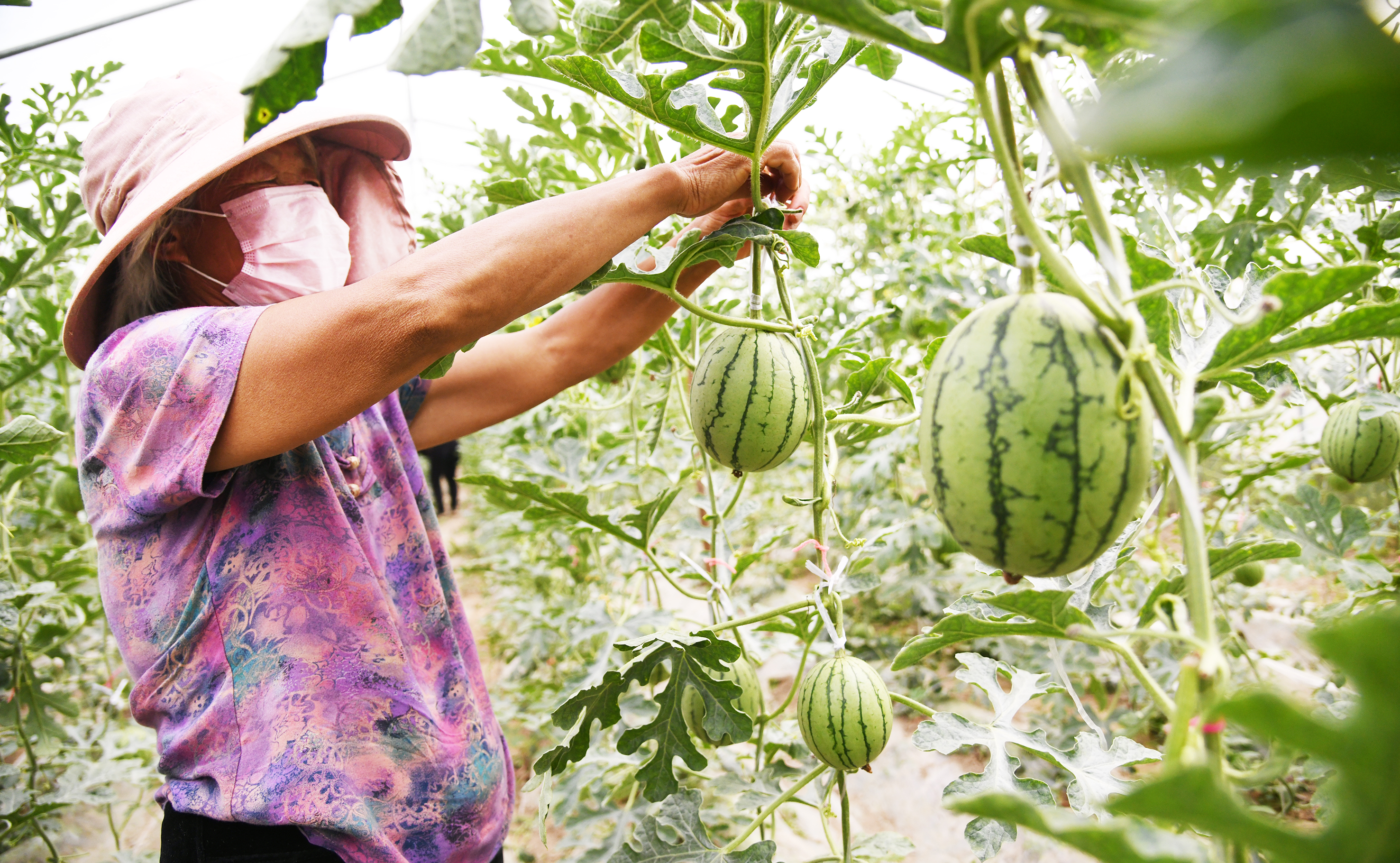 西華遲營(yíng)鄉(xiāng)百農(nóng)園產(chǎn)業(yè)扶貧基地內(nèi)的西瓜