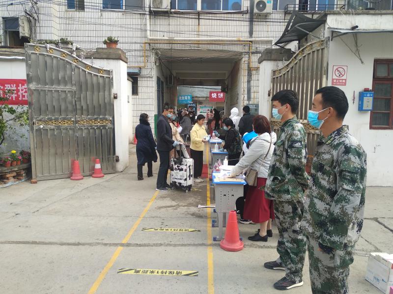 “同學(xué)們,請排好隊(duì),與前面的人保持1米以上的距離。”4月20日上午,在鄲城縣華宇中學(xué),來自洺南街道基干民兵應(yīng)急分隊(duì)的民兵們正在現(xiàn)場維護(hù)秩序,幫助該校做好九年級(jí)學(xué)生復(fù)學(xué)入校防疫工作。