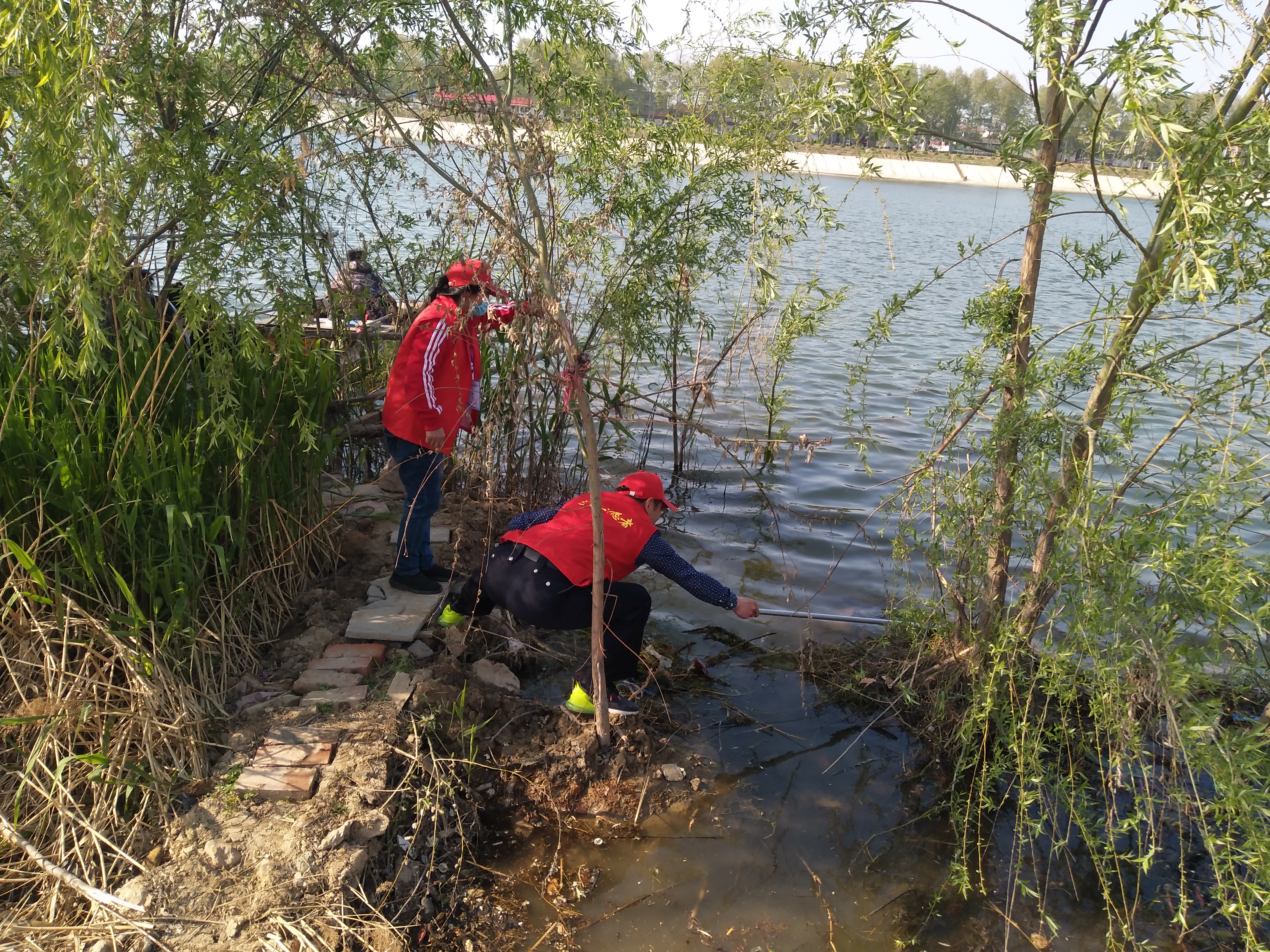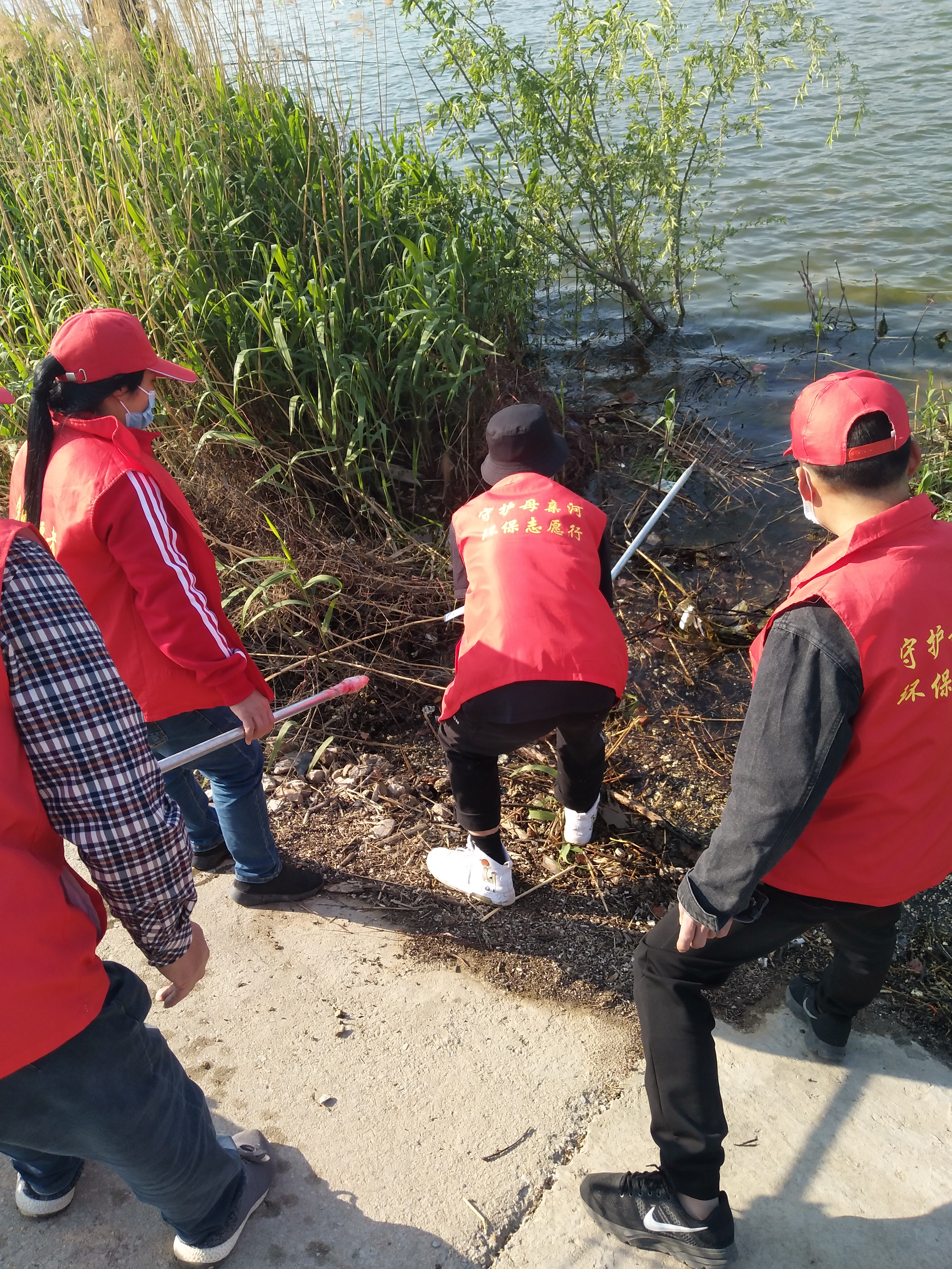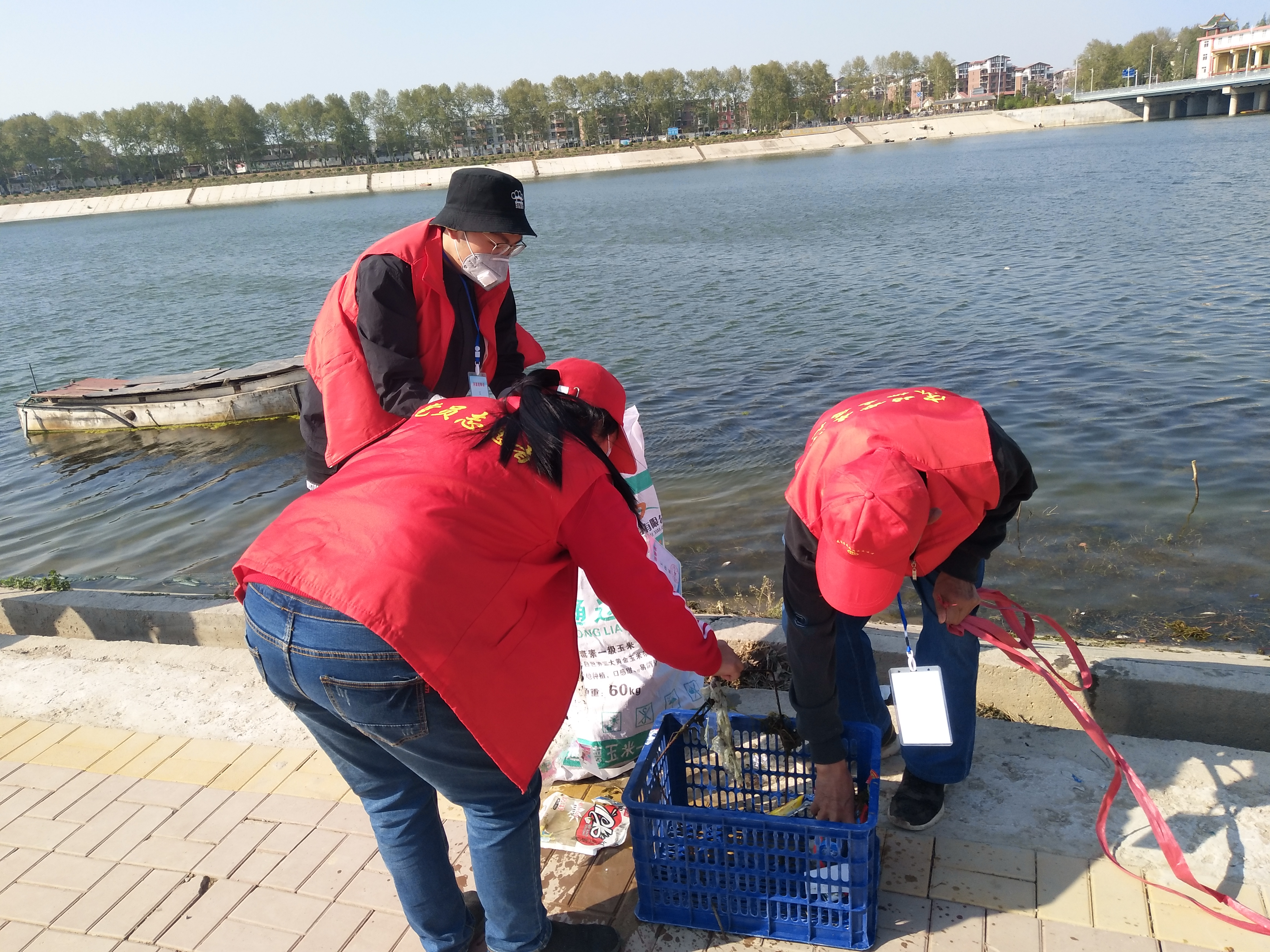 留下若干人員做問(wèn)卷調(diào)查,孫彩云開始安排護(hù)河人員。誰(shuí)拿鐵耙,誰(shuí)拿網(wǎng)兜,誰(shuí)拿垃圾箱,誰(shuí)負(fù)責(zé)運(yùn)垃圾袋……孫彩云一一分工后,拿起大喇叭給志愿者團(tuán)隊(duì)提示注意事項(xiàng):“只撿白色垃圾呀,不要鉤水草,這個(gè)季節(jié)魚在上面產(chǎn)卵呢!”