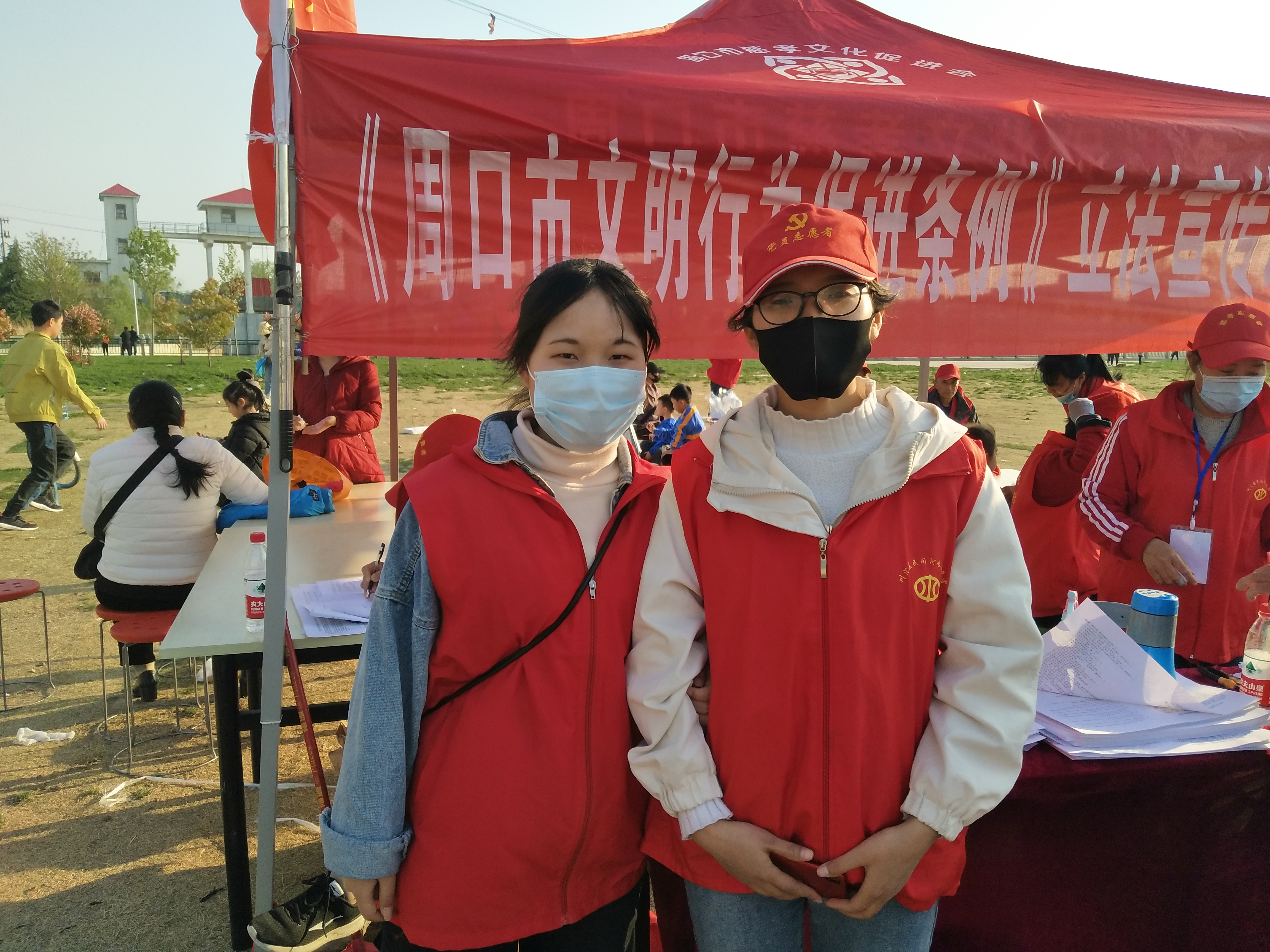 說(shuō)著,孫彩云帶領(lǐng)記者走進(jìn)《周口市文明行為促進(jìn)條例》調(diào)查問(wèn)卷棚?!拔覀兘裉焐衔缭谖逡粡V場(chǎng)做問(wèn)卷調(diào)查,收了300多份,下午轉(zhuǎn)移到這里,這兩個(gè)淮陽(yáng)來(lái)的大學(xué)生全程跟著?!眱擅髮W(xué)生看著記者,帶著口罩,雙眼彎彎不擋笑意,她們說(shuō):“我們是在海南上的大學(xué),很喜歡參加志愿者活動(dòng),這不因?yàn)橐咔楝F(xiàn)在還沒開學(xué)嗎,在網(wǎng)上查到慈孝文化這個(gè)組織就來(lái)了?!?/p>