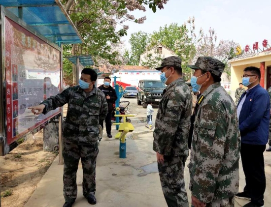 4月21日上午,老子故里春風(fēng)和煦,白楊寺村綠意盎然。在脫貧攻堅(jiān)決戰(zhàn)決勝的關(guān)鍵時期,周口軍分區(qū)副司令員薛振喜到鹿邑縣張店鎮(zhèn)白楊寺村檢查指導(dǎo)縣人武部定點(diǎn)幫扶的脫貧工作??h委常委、縣人武部政委杜寶森,縣委常委、縣政府黨組成員張國慶,縣委黨校黨委書記、常務(wù)副校長鄭峰陪同檢查。