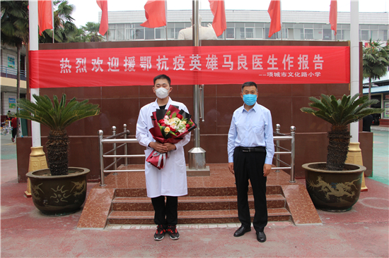 據(jù)了解,馬良醫(yī)生是項(xiàng)城市文化路小學(xué)畢業(yè)的優(yōu)秀學(xué)子,是一名剛參加工作不久的90后醫(yī)生,是我省第十一批援鄂醫(yī)療隊(duì)隊(duì)員。他用樸實(shí)的語(yǔ)言講述了他們請(qǐng)纓戰(zhàn)“疫”的初心和經(jīng)歷。他是家中獨(dú)子,但他更是一名醫(yī)生,在危難面前,他勇敢地?fù)?dān)當(dāng)起醫(yī)生的職責(zé)。在湖北黃陂,他穿著厚厚的防護(hù)服每天至少要工作12個(gè)小時(shí),要克服常人難以體會(huì)的各種困難。雖然身心疲憊,但看到患者從重癥到輕癥再到治愈出院,內(nèi)心感到無(wú)比的欣慰和滿足。沒有華麗的語(yǔ)言,沒有激昂的口號(hào),但字字句句卻感人肺腑,展現(xiàn)了援鄂隊(duì)員們?cè)跊]有硝煙的戰(zhàn)場(chǎng)上,與時(shí)間賽跑,與病魔較量,救死扶傷、無(wú)私奉獻(xiàn)、大愛無(wú)疆的職業(yè)道德和崇高精神。老師們倍受鼓舞,決心立足崗位、再創(chuàng)佳績(jī);學(xué)生們深受教育,立志奮發(fā)向上、成才報(bào)國(guó)。