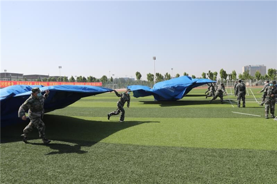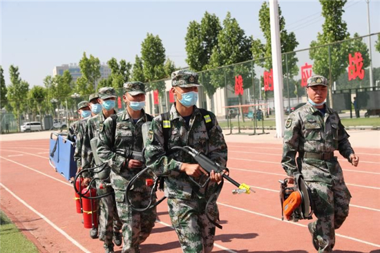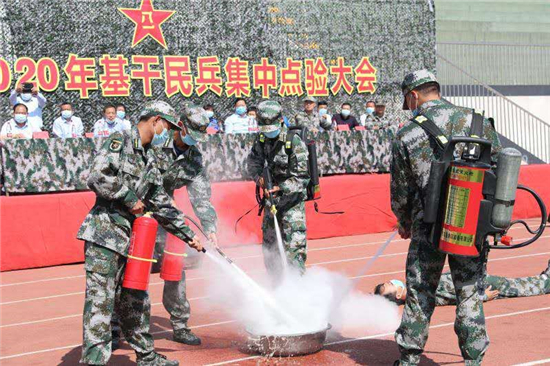 活動現(xiàn)場,八一軍旗、民兵隊旗迎風飄揚。上午9時許,全體起立,現(xiàn)場奏響雄渾的《中國人民解放軍進行曲》。接著,政委郭立君宣讀了民兵干部任職命令,應急班長帶領(lǐng)全體民兵進行了宣誓,新入隊民兵進行了表態(tài)發(fā)言。應急指揮所開設(shè)、隊列表演、警棍盾牌操匯報、快速控火救人、戰(zhàn)場急救……一個個精彩的匯報,贏得現(xiàn)場掌聲陣陣。