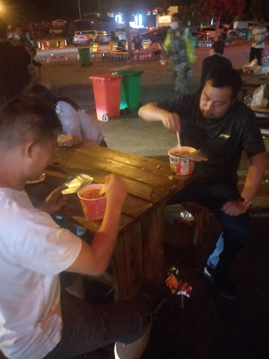 當(dāng)晚,隊(duì)員們帶著嫌疑人歸來,在服務(wù)區(qū)內(nèi),群里傳來一張大家吃方便面的照片,靳偉成還發(fā)來一句:“帶了這么多衣服,忙得都沒有時(shí)間換一件。”