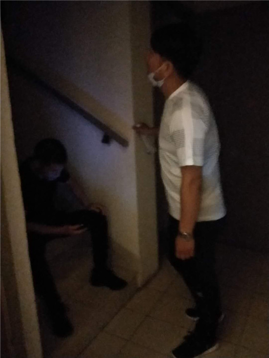 按照事先摸排到的信息,抓捕組民警終于在南京市江寧區(qū)一小區(qū)內(nèi)找到了嫌疑人的居住地,而嫌疑人卻不在屋內(nèi)。于是,民警們便在嫌疑人家門“守株待兔”,群里發(fā)來幾張民警坐在樓梯口蹲守照片。等待是漫長的,一直等到晚上10時(shí)許,嫌疑人始終沒有出現(xiàn)。民警通過嫌疑人門把手上幾天前的一張廣告單頁判斷,嫌疑人很有可能已經(jīng)不在此居住,便撤離了蹲守點(diǎn)。