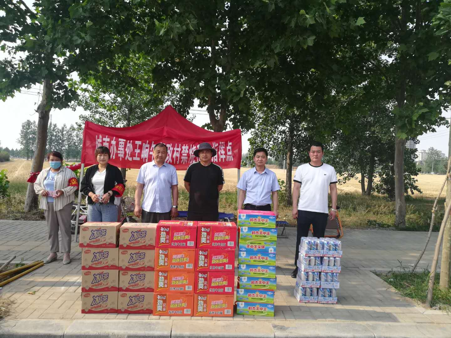 連日來,伴隨著持續(xù)的高溫,川匯區(qū)城南街道辦事處進(jìn)入了“三夏”大忙之季。辦事處、行政村黨員干部日夜堅(jiān)守在秸稈禁燒工作一線,確保實(shí)現(xiàn)“零火點(diǎn)”目標(biāo)。5月30日下午,轄區(qū)愛心企業(yè)興源建材負(fù)責(zé)人帶領(lǐng)工作人員,帶著方便面64箱、冰紅茶64件、邦杰火腿64件、啤酒64件,深入到城南辦轄區(qū)8個行政村禁燒指揮點(diǎn)看望慰問奮戰(zhàn)在秸稈禁燒一線的工作人員。愛心企業(yè)負(fù)責(zé)人對奮戰(zhàn)在一線的禁燒人員不畏高溫酷暑、不分晝夜、不辭辛苦的工作精神所感動,對他們改善大氣污染環(huán)境做出的努力表示由衷的敬意。辦事處黨工委書記郭誠對企業(yè)的慷慨解囊奉獻(xiàn)愛心,支持秸稈禁燒工作的舉動表示感謝。該企業(yè)的愛心舉動,極大調(diào)動了全辦禁燒工作隊(duì)員的積極性,收到了良好的社會影響和正能量效果。大家紛紛表示,要再接再厲,堅(jiān)守崗位,盡職盡責(zé),務(wù)必嚴(yán)防死守,杜絕焚燒隱患,以實(shí)際行動全面打贏“三夏”秸稈禁燒攻堅(jiān)戰(zhàn)。