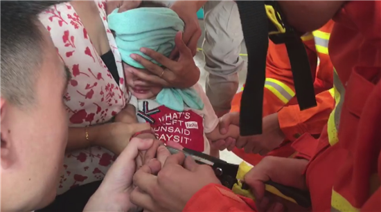 到達(dá)現(xiàn)場經(jīng)詢問得知,小男孩由于貪玩,將一個細(xì)長鋼管卡在了右手大拇指上,小男孩的家人嘗試了一些方法無果后,向消防救援大隊請求了幫助。由于時間稍長,小男孩的手指已經(jīng)浮腫,不停的哭泣,消防指戰(zhàn)員一邊尋求解決方法一邊安慰其情緒。經(jīng)觀察后,指戰(zhàn)員首先利用斷線鉗將鋼管剪斷,然后用擴張器小心翼翼的進(jìn)行擴張,經(jīng)過2分鐘緊張救援,成功將鋼管取下。