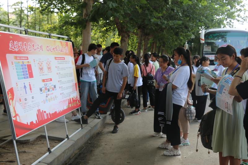 在該縣各標準化高考考點征兵宣傳現(xiàn)場,人頭攢動、熱鬧非凡。“好男兒,來當兵”大紅條幅和“把忠心獻給祖國,把青春獻給軍營”“參軍報國盡義務(wù),熱血青年競風采”的大型宣傳牌格外引人注目,內(nèi)容豐富的征兵宣傳展板一字排開,《征兵宣傳手冊》《大學新生應(yīng)征入伍宣傳單》《征兵政策宣傳解讀手冊》等征兵宣傳資料擺放在咨詢臺上一目了然,吸引了眾多的考生和家長駐足觀看,圍著咨詢臺詢問有關(guān)征兵事宜。