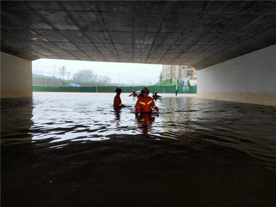 哪里有急難險(xiǎn)重,哪里就有消防指戰(zhàn)員的身影。當(dāng)日上午9時(shí)許,接到周口大道涵洞下有車(chē)輛被淹、司機(jī)遇困的警情后,示范區(qū)消防救援大隊(duì)緊急出動(dòng),面對(duì)齊胸的積水,他們無(wú)所畏懼,成功對(duì)遇困司機(jī)和車(chē)輛緊急施救。