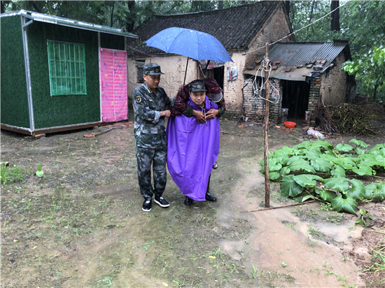 強降雨導(dǎo)致部分地勢較低的農(nóng)房及農(nóng)田被淹,在排查中,發(fā)現(xiàn)鄭老莊村幾處農(nóng)房被水淹泡,隨時有倒塌的危險,了解這一情況后,該鎮(zhèn)第八工作區(qū)區(qū)長、“中國好人”、優(yōu)秀退役軍人蔣昆立即組織鄭老莊村兩委人員及民兵應(yīng)急隊,第一時間趕到現(xiàn)場,轉(zhuǎn)移隱患點周圍住戶?!坝暝絹碓酱?,你們這個屋今晚上不能住了,反正隨時都有倒塌的危險,把要緊的東西收拾一下,跟到我們走快點”蔣昆勸說鄭老莊村受災(zāi)的一名老大爺。