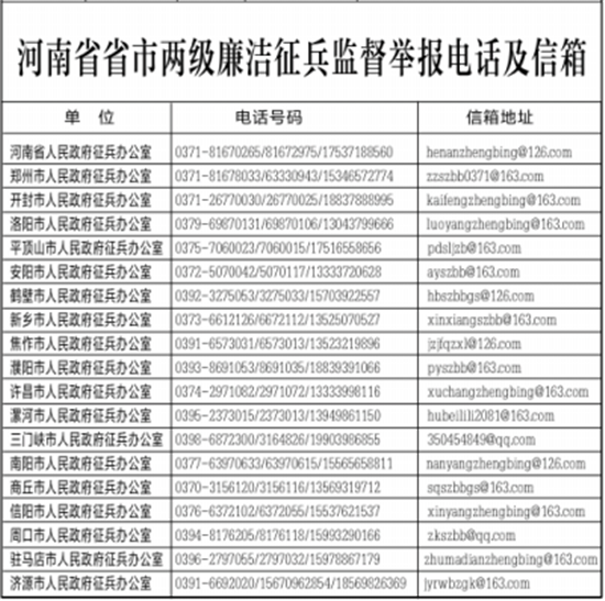 河南省廉潔征兵監(jiān)督舉報(bào)方式公示