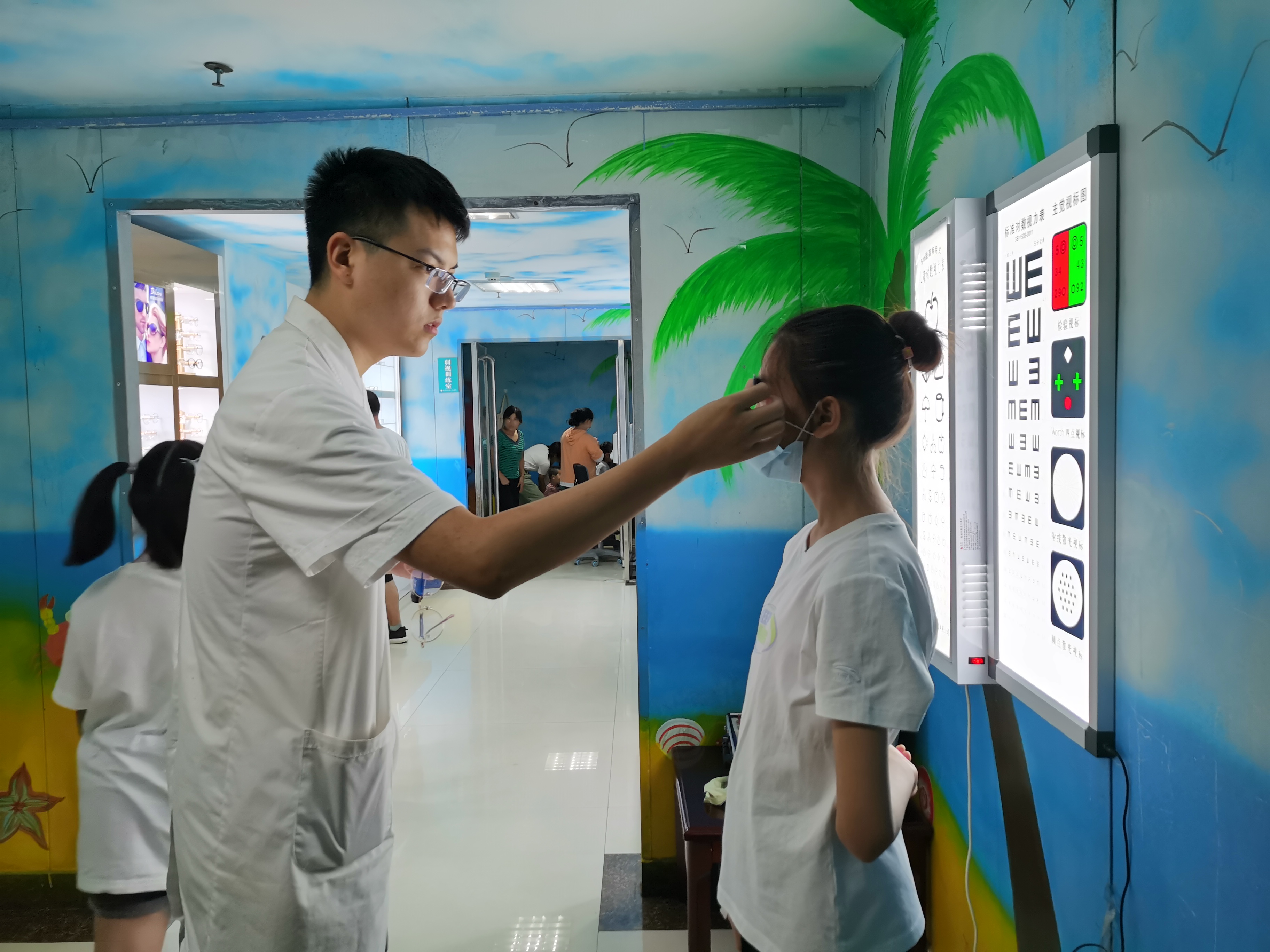 8月25日,周口市兒童醫(yī)院眼科內(nèi)站滿了來檢查、校正視力的家長和孩子。