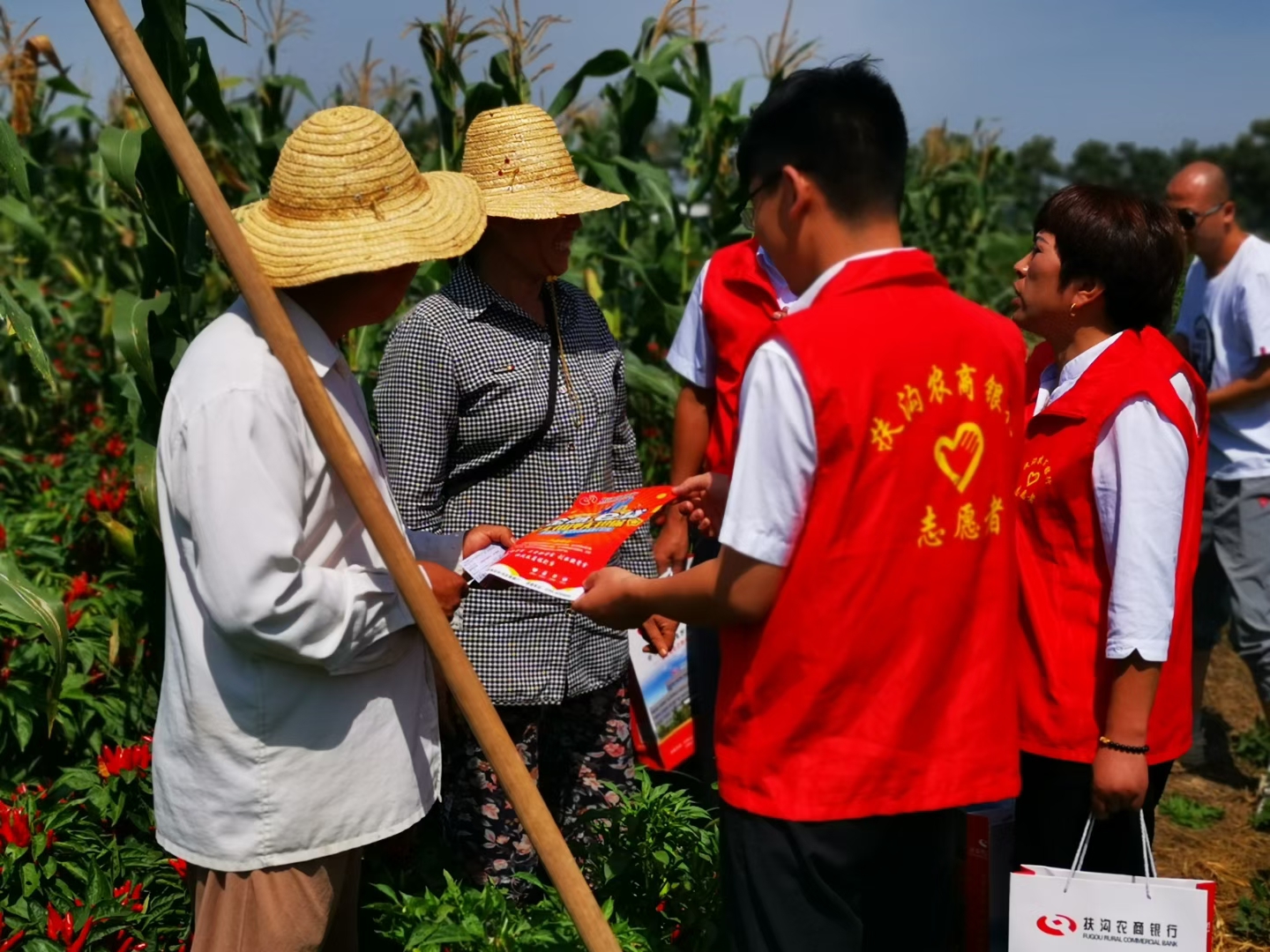 9月5日,扶溝農(nóng)商銀行大新支行“紅馬甲”們結(jié)合金融知識(shí)普及月深入田間地頭為老百姓送上金融服務(wù)和金融知識(shí),深受村民的歡迎。