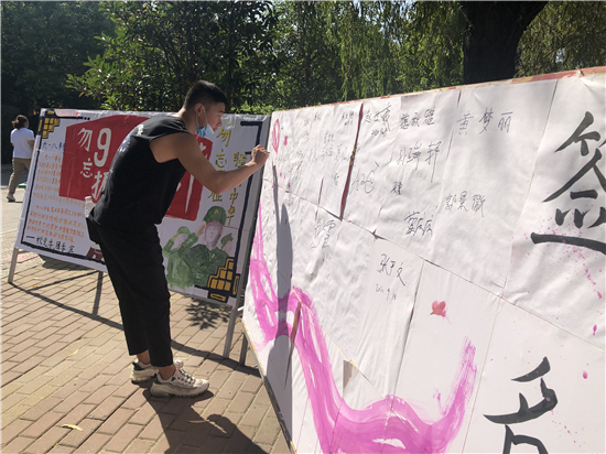 記者在河南科技職業(yè)大學(xué)看到,學(xué)校團(tuán)委組織各學(xué)院團(tuán)總支開展“銘記九一八勿忘國恥”主題團(tuán)日活動,各級團(tuán)組織通過主題教育班會、簽名儀式等活動重溫“九一八”歷史事件。河南科技職業(yè)大學(xué)團(tuán)委副書記劉曉娜表示,通過回顧這段歷史,同學(xué)們深刻體悟到了中華民族曾經(jīng)經(jīng)受的苦難和今天幸福生活的來之不易,以此激發(fā)同學(xué)們的責(zé)任感和愛國熱情,進(jìn)一步增強(qiáng)青年學(xué)子們的愛國主義意識,讓大家銘記歷史,不忘初心、牢記使命,堅定青年發(fā)奮圖強(qiáng)的理想信念,為實現(xiàn)中華民族偉大復(fù)興的中國夢貢獻(xiàn)青春力量。