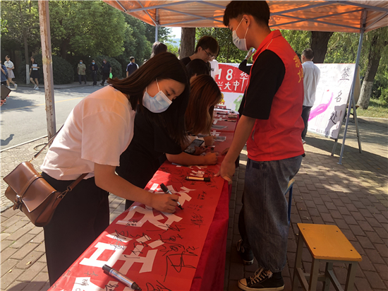 活動結(jié)束后,同學(xué)們紛紛表示,要堅定擁護(hù)中國共產(chǎn)黨的領(lǐng)導(dǎo),勤奮學(xué)習(xí)、嚴(yán)于律己,用實際行動肩負(fù)起實現(xiàn)中華民族偉大復(fù)興的歷史重任。圖為學(xué)生進(jìn)行簽名。