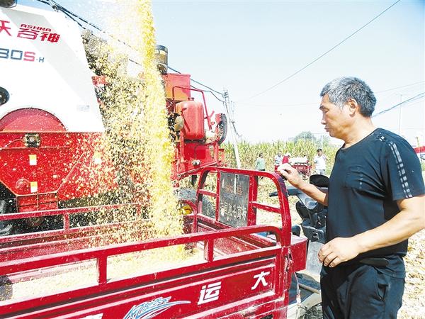 昨日上午,沈丘縣石槽集鄉(xiāng)涂樓村一訂單優(yōu)質玉米生產基地內,村民正忙著機收玉米。連日來,該縣農民滿懷豐收的喜悅,利用晴好天氣抓緊搶收玉米,力保秋糧顆粒歸倉。