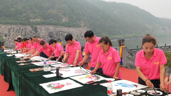 受郭泰森影響,村里不少農民也想學習畫牡丹,在當地政府的支持和幫助下,郭泰森舉辦了牡丹畫免費培訓班、畫師培訓班,參加培訓的學員場場爆滿。如今,平樂鎮(zhèn)牡丹畫師已發(fā)展到1000余名,形成了包括培訓創(chuàng)作、裱畫包裝、推介營銷、研學旅行等相對完整的產業(yè)鏈,帶動相關從業(yè)人員5000余人。