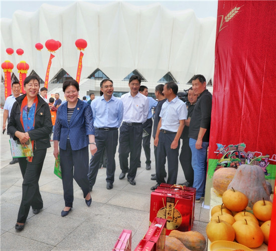 胡旭云在開幕式上致辭。她說,這是77萬扶溝人民分享收獲的盛會,展示了扶溝農(nóng)業(yè)的豐碩成果,她代表省農(nóng)業(yè)農(nóng)村廳向廣大農(nóng)民和奮戰(zhàn)在“三農(nóng)”一線的同志們表示誠摯的問候,對扶溝農(nóng)民豐收節(jié)的隆重舉行表示熱烈的祝賀。扶溝蔬菜種植歷史悠久,種植技術(shù)領(lǐng)先,規(guī)模集聚壯大,名優(yōu)產(chǎn)品眾多,蔬菜產(chǎn)業(yè)收入占全縣農(nóng)民人均純收入的37%,扶溝農(nóng)民找到了致富奔小康的金鑰匙。扶溝縣要認真貫徹落實習近平總書記關(guān)于“三農(nóng)”工作的重要論述,按照省委書記王國生調(diào)研扶溝講話要求,通過布局區(qū)域化、生產(chǎn)標準化、經(jīng)營規(guī)模化、發(fā)展產(chǎn)業(yè)化、方式綠色化、產(chǎn)品品牌化,把扶溝蔬菜產(chǎn)業(yè)進一步做大做強做精,打造河南農(nóng)業(yè)的新亮點、河南蔬菜的優(yōu)質(zhì)品牌。