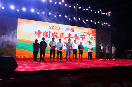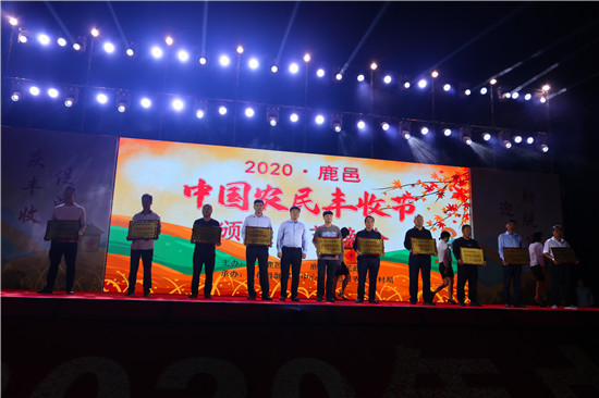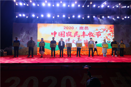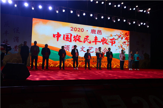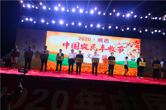 9月22日晚,由中共鹿邑縣委、鹿邑縣人民政府主辦的2020年鹿邑縣農(nóng)民豐收節(jié)文藝晚會(huì)在鹿邑縣文化中心廣場舉辦。晚會(huì)現(xiàn)場頒布了鹿邑縣“十佳家庭農(nóng)場”“十佳農(nóng)民合作社”“十佳特色農(nóng)產(chǎn)品品牌”“十佳返鄉(xiāng)創(chuàng)業(yè)脫貧致富帶頭人”“十佳脫貧致富先進(jìn)個(gè)人”五項(xiàng)獎(jiǎng)項(xiàng),40名新型農(nóng)民(農(nóng)場、合作社)代表和10個(gè)特色農(nóng)產(chǎn)品品牌獲殊榮,他們用行動(dòng)和產(chǎn)品充分展示了全縣現(xiàn)代農(nóng)業(yè)在過去一年中取得的輝煌成果??h領(lǐng)導(dǎo)雷申、楊所超、侯自峰、王曉征、張國慶、肖西國等出席豐收節(jié)晚會(huì),并為獲獎(jiǎng)?wù)哳C發(fā)榮譽(yù)證書和獎(jiǎng)牌。