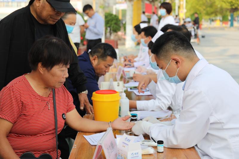 義診活動現(xiàn)場,通過懸掛主題宣傳橫幅、擺放健康知識宣傳展板、設(shè)置義診咨詢服務(wù)臺、發(fā)放健康促進(jìn)宣傳折頁等方式為群眾進(jìn)行健康知識宣教。前來咨詢就診的群眾絡(luò)繹不絕,醫(yī)務(wù)人員熱情地為群眾提供免費(fèi)測量血壓、血糖等服務(wù),耐心細(xì)致地解答群眾健康咨詢并給予診療建議,提醒平時(shí)多多加強(qiáng)鍛煉,注意健康飲食。