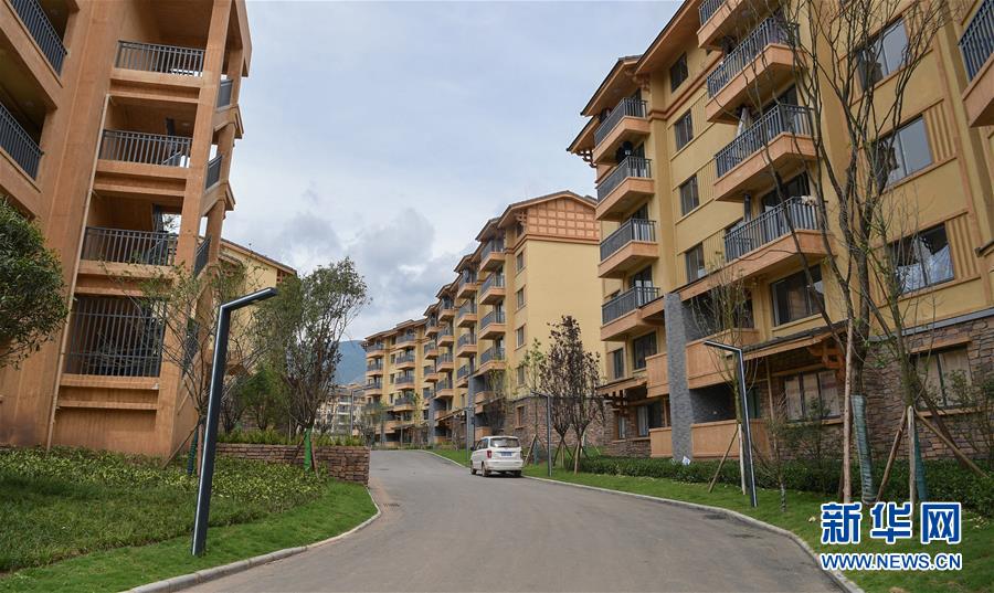 搬下山的人們,住進了有彝族傳統(tǒng)建筑風(fēng)格的新社區(qū)(8月11日攝)。 新華社記者 李賀 攝