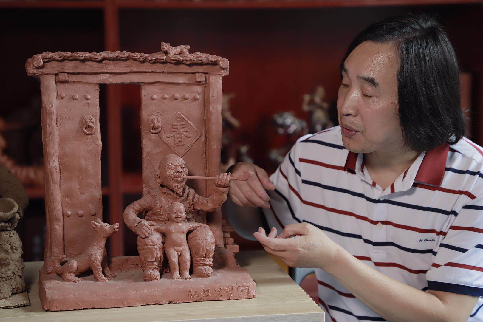 張振福從事泥塑藝術(shù)創(chuàng)作29年,進(jìn)修于河南教育學(xué)院美術(shù)系。經(jīng)過(guò)12年潛心研究,成功研制了“鈞瓷泥塑”,多次獲國(guó)家、省、市技能大師大獎(jiǎng),也是本次河南省泥塑類唯一入選的建設(shè)項(xiàng)目。項(xiàng)目將從制作平臺(tái)、制作空間、制作設(shè)備等全面進(jìn)行提升改造,將更加有利于中華民俗文化的傳承與傳播。